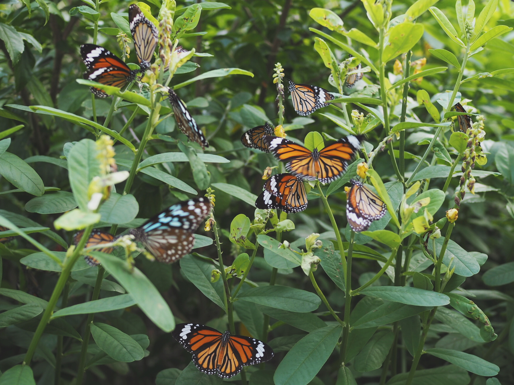 Puisto on ihana keidas pilvenpiirtäjien juurella; puita, pensaita, kukkia, lampia, suihkulähteitä, penkkejä. Pieni vesiputous laskee lampeen, joka on täynnä kilpikonnia ja erilaisia kaloja. Toisaalla valtava määrä perhosia lentelee kukkia täynnä olevan pensaan ympärillä ja tarjoaa meille ja monelle muulle kiinnostavan kuvauskohteen. Puistossa on ainakin kolme hääparia ottamassa hääkuvia, mikä ei johdu pelkästään paikan kauneudesta, sillä puiston laitamilla on myös paikallinen maistraatti. Otamme valokuvia ja istumme hetken varjossa katsellen puistoa ja siellä käyskenteleviä ihmisiä.
