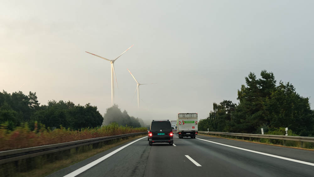 Se, että luet tätä tekstiä, kertoo jo, että selviämme Saksan läpiajosta hengissä. Kyllä, ensimmäiset tunnit ovat melkoista totuttelua, mutta yllättävän nopeasti saksalaiseen moottoritiekulttuuriin tottuu. Sähkärimme on kuin kotonaan monikaistaisilla baanoilla. 140-150 km/h -nopeudet eivät tunnu juuri missään ja ohittelemme vasenta kaistaa käyttäen siinä missä paikalliset bensakoneetkin. Moneen kertaan ihmettelemme ääneen sekä niitä tolkuttoman lujaa ajavia audikuskeja (kyllä, väitämme että suurin osa todella lujaa ajavista autoista oli Audeja) että hitainta kaistaa miehittäviä rekkaletkoja. Rekkoja vaan riittää ja riittää.