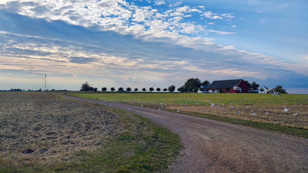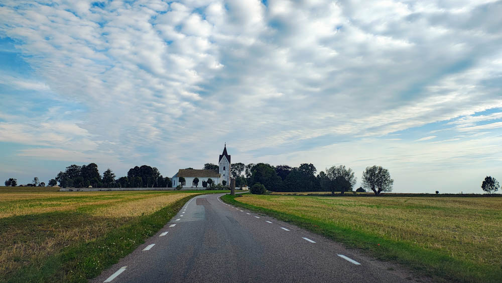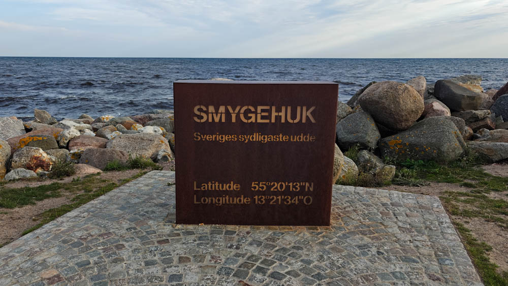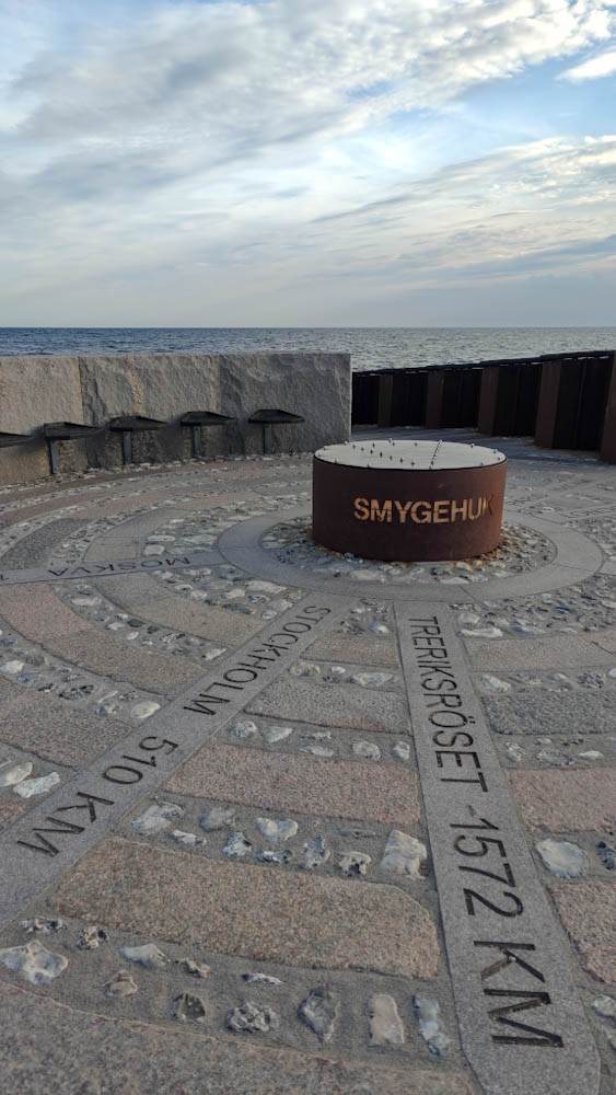 Seuraavan kerran suunnitelma muuttuu lennossa kun pääsemme Etelä-Ruotsiin. Matkalla Trelleborgiin päätämme poiketa valtatieltä ja ajamme kohti Ruotsin eteläisintä pistettä pieniä maaseututeitä pitkin. Tämä osoittautuu loistoratkaisuksi: uskomattoman kaunista, tasaista peltomaisemaa, pieniä kyliä, kirkkoja ja puurivistöjen reunustamia pikkuteitä. Ruotsin eteläisimmällä pisteellä Smygehusissa meri vaahtoaa ja tuulee melkoisesti, mutta kaunista sielläkin on.