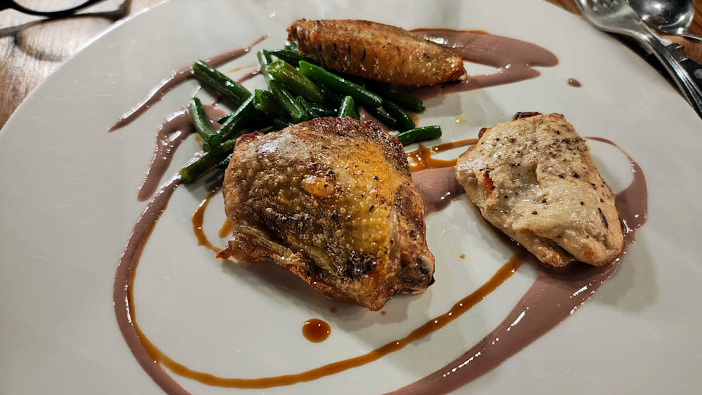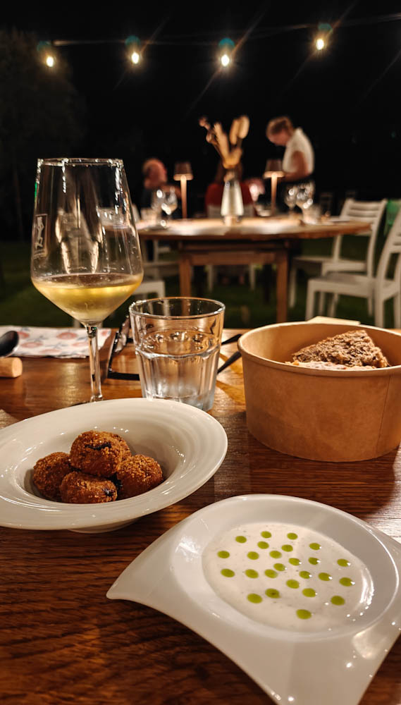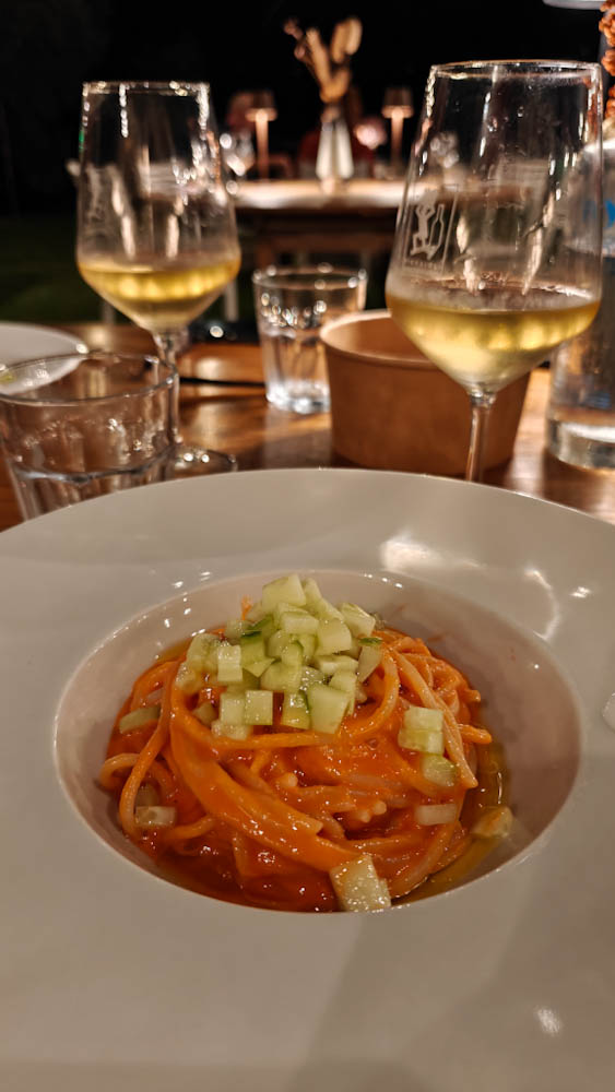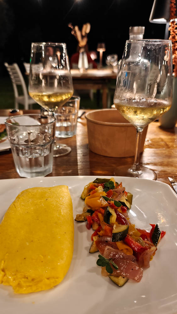 Nautimme myös herkullisen illallisen Tenuta San Marcellon ravintolassa. Aiemmat Italian agriturismoillallisemme ovat olleet herkullisia ja edullisia monen ruokalajin istuntoja, sisältäen viinit. Tämä osteria on ihan oikea ravintola siinä mielessä, että alkupalat, primot ja secondot tilataan erikseen ruokalistalta, myös viinit tilataan erikseen. Hinnat ovat toki suomalaisravintoloita edullisemmat ja tilan oma passerina -viinipullokin maksaa vain parikymppiä, mutta ensimmäinen illallisemme kustantaa kuitenkin reilun satasen. Juuri sillä hetkellä hinnalla ei ole mitään merkitystä, ruoka ja viini ovat erinomaisia, samoin palvelu ja ympäristö.