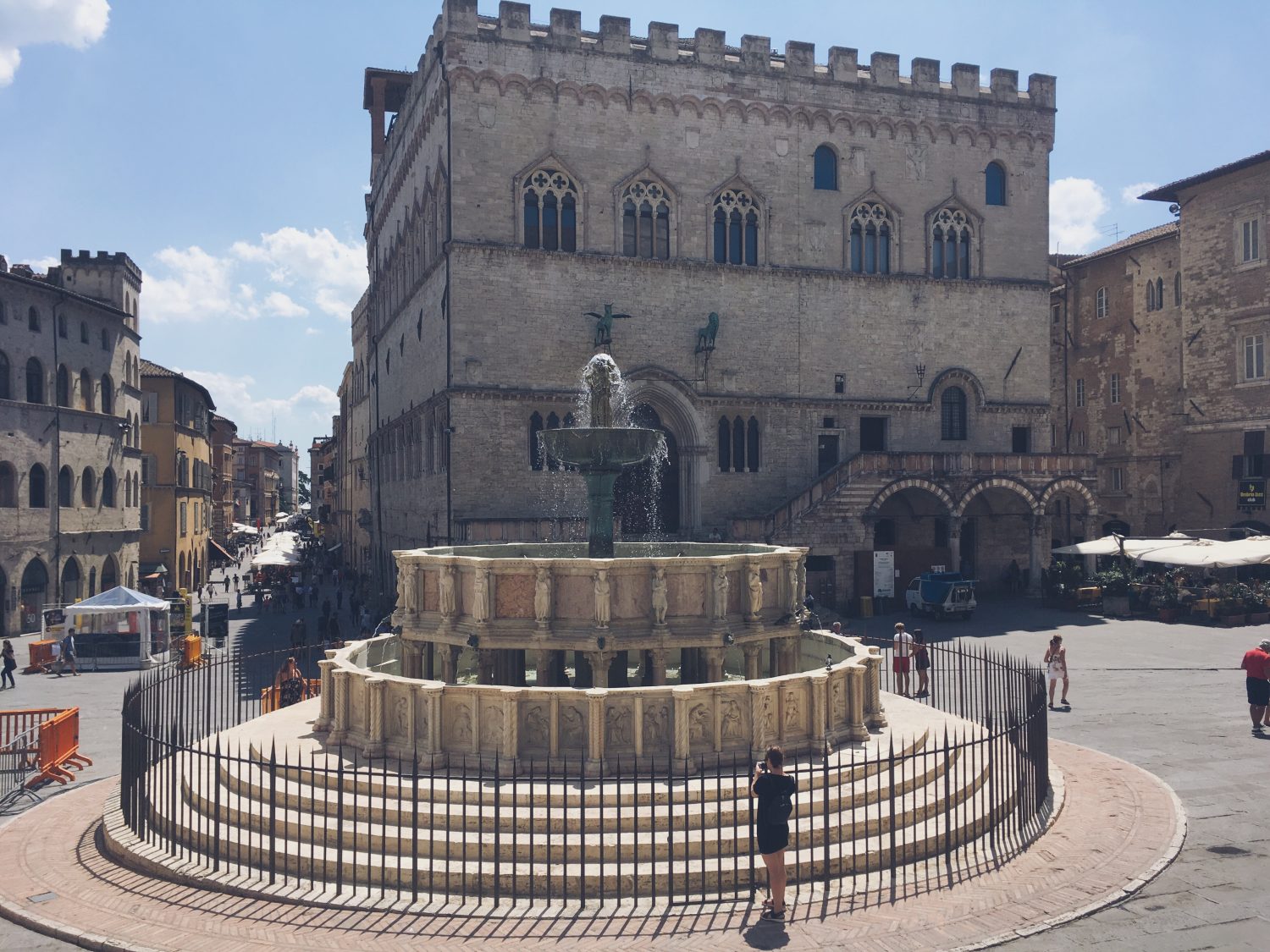 Lounaaksi paninit ja lasilliset valkoviiniä uudehkossa, orgaanisia tuotteita suosivassa kahvilassa ja katselemme kahvilan yläkerran ikkunasta Perugian keskusaukion vilinää. Kaupungin kuuluisin nähtävyys lienee suihkulähde Fontana Maggiore. Sen vieressä sijaitseva duomo on tietysti upea, mutta sen sisällä alkaa ensimmäistä kertaa tuntua siltä, että koristeellisen ja mahtipontisen kirkkotaiteen ja valtavien, vanhojen kirkkorakennusten suhteen alkaa käsitys- ja hahmotuskyvyn rajat tulla vastaan. Oikeastaan tätä tunnetta osasi pelätä ja odottaakin. Tunteeseen sekoittuu jokin omituinen kateus Keski- ja Etelä-Euroopan meikäläisittäin huomattavasti pidempää historiaa, kulttuuria ja sivistystä kohtaan.