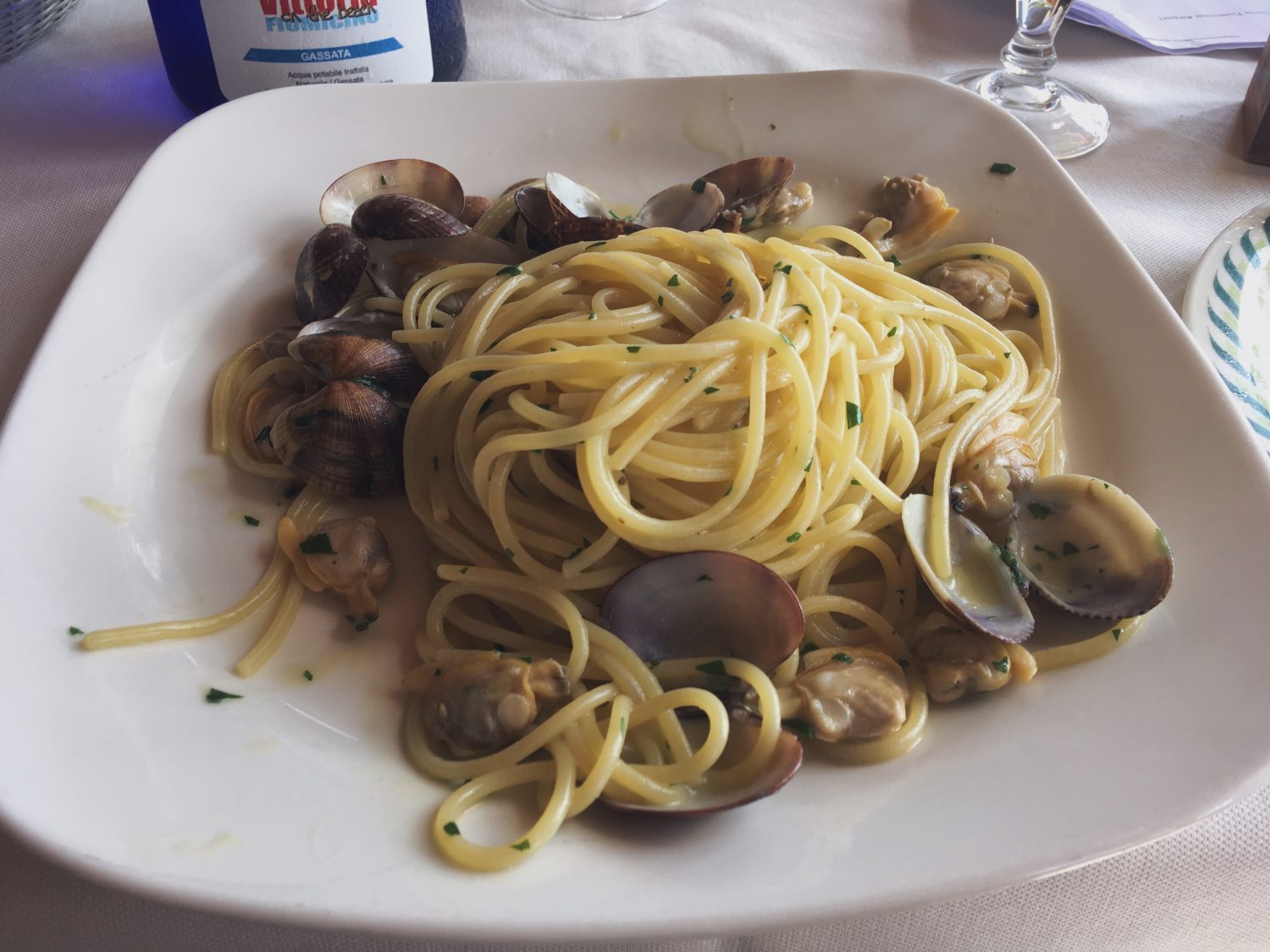 Moottoritiellä saa hetkittäin ajaa 130 km/h, mihin nopeuteen Fordimme juuri ja juuri yltää, joten Rooma lähestyy nopeasti. Sen sijaan että ajaisimme suoraan lentokentälle, suuntaamme lounaalle kentän tuntumassa sijaitsevaan Fiumicinon merenrantakaupunkiin. Lentokentällekin nimensä antaneessa kaupungissa on rauhallista, mutta rantaravintoloiden ja viihdekeskusten määrän perusteella siellä saattaisi joskus olla vilkkaampaakin. Löydämme rannalta lounaspaikan, jonka ainoat asiakkaat olemme. Pizzaa ei kuulemma saa, pastaa kyllä.